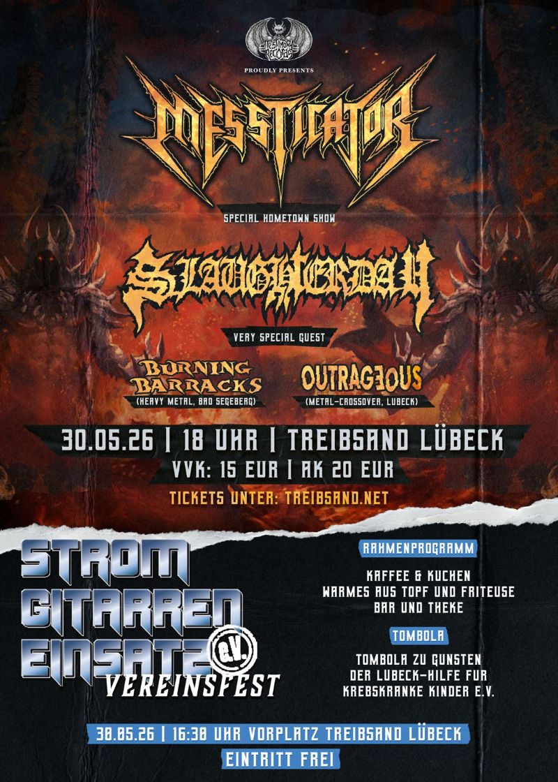 Unser Vereinsfest findet dieses Jahr in einem neuen Rahmen statt. Wir freuen uns sehr, zusammen mit dem treibsAND sowie den Jungs von Messticator deren Hometown- und Release-Show zum neuen Album "Total Mastery" veranstalten zu können.